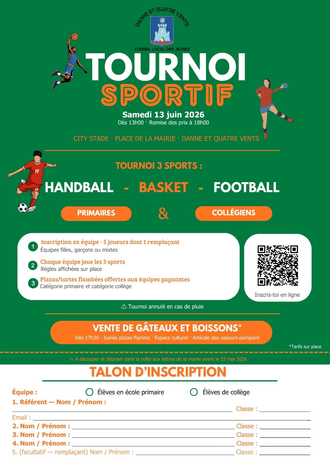 Le 14 juin 2025, le Conseil Local des Jeunes organise un Tournoi Sportif sur le city-stade de Danne et Quatre Vents.
